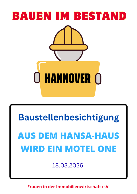 Liebe Immofrauen, liebe Gäste, wir laden euch recht herzlich zu der Besichtigung der Baustelle „Am Aegidientorplatz in Hannover“ ein. Aus dem ehem. Hansa-Haus wird ein Hotel. Die NORD/LB…